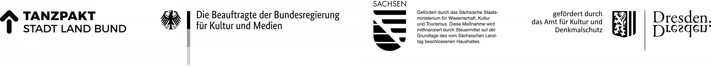 TANZPAKT in residence wird gefördert von TANZPAKT Stadt-Land-Bund aus Mitteln der Beauftragten der Bundesregierung für Kultur und Medien, sowie kofinanziert durch das Staatsministerium für Wissenschaft, Kultur und Tourismus und der Landeshauptstadt Dresden, Amt für Kultur und Denkmalschutz.